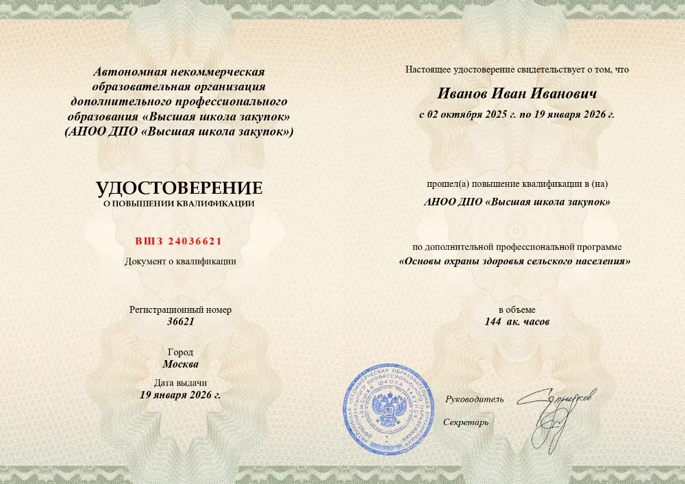 Курс повышения квалификации (144 часа) по основам охраны здоровья в сельской местности. Изучите правовые, организационные и экономические аспекты сельского здравоохранения, санитарно-эпидемиологическое обеспечение и управление качеством медицинской помощи. Онлайн-обучение в в Кемерове с итоговой аттестацией.